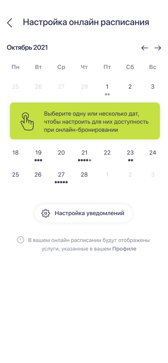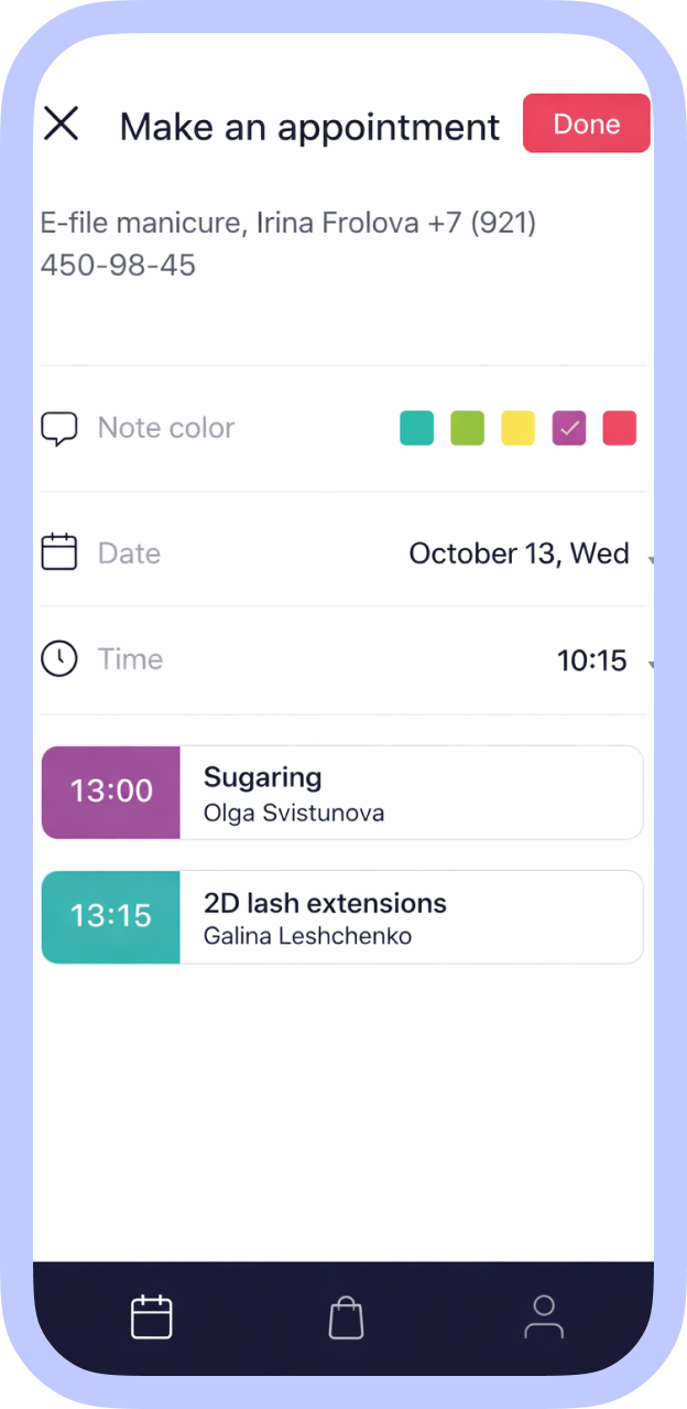 The schedule is customizable. For example, block days or times when unavailable to accept clients or set automatic breaks between appointments. Personal events can also be added: from doctor visits to reminders for utility meter readings.