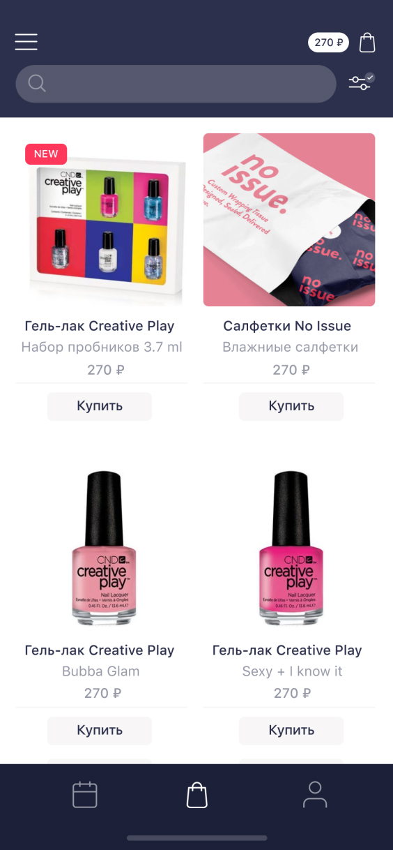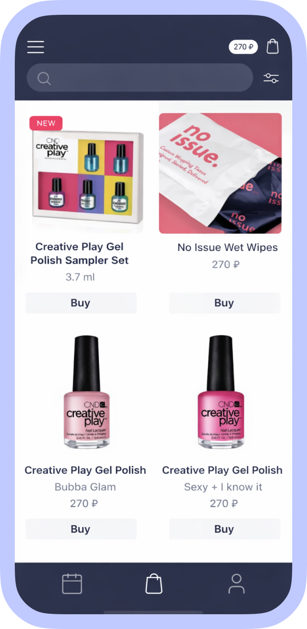 One of the platform's main advantages is consumables for any cosmetic procedures at low prices. We integrated the beauty marketplace within the app where orders can be placed with delivery and paid online.