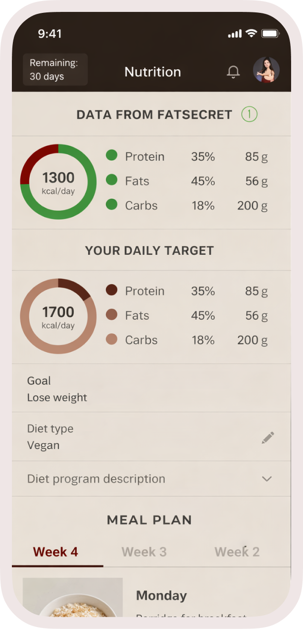 In the growing market of online courses and healthy lifestyle apps, the project needed technological enhancement. Users increasingly chose products with built-in workout programs, nutrition, recommendations, and progress tracking. Without a digital platform, the brand lost market position and audience loyalty.