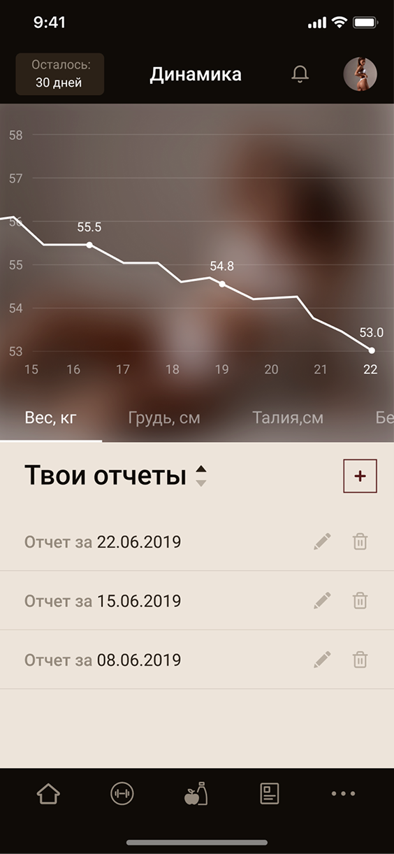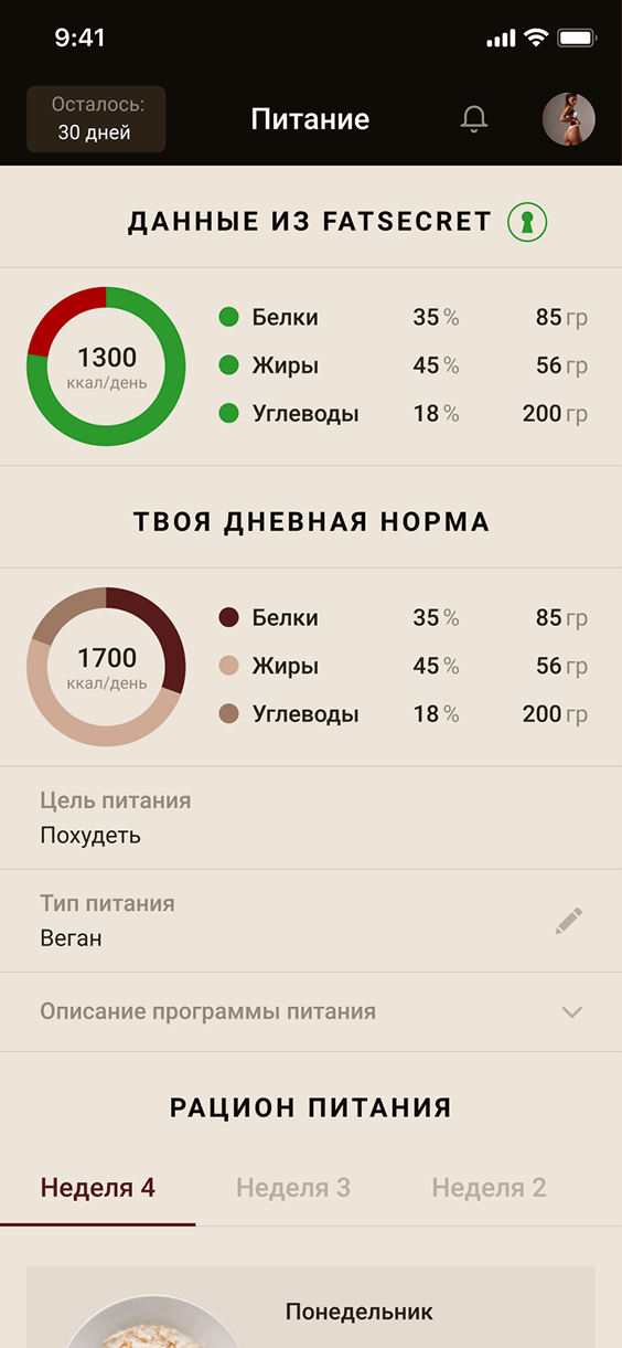 Create a mobile app that would become the foundation of Anastasia Mironova's online school. The product needed to combine workouts, nutrition, and communications in one interface, be convenient for daily use, and easily scalable. Main goals: increase audience engagement, centralize content management, and boost monetization through proprietary digital channels.
