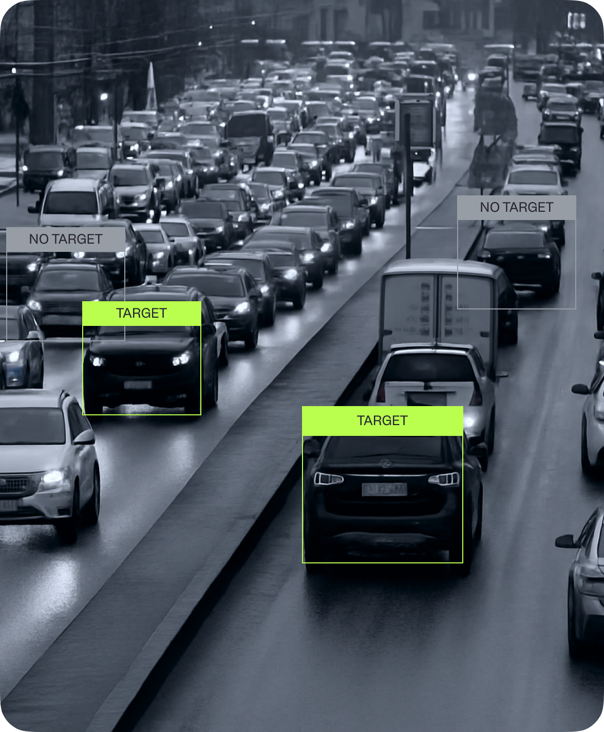 Our software tracks the advertiser's target audience and shows advertising only when it passes by the billboard. Total time for detection, recognition, and audience analysis takes less than 0.5 seconds. The camera also reads vehicle speeds and analyzes contact time with the advertising message.