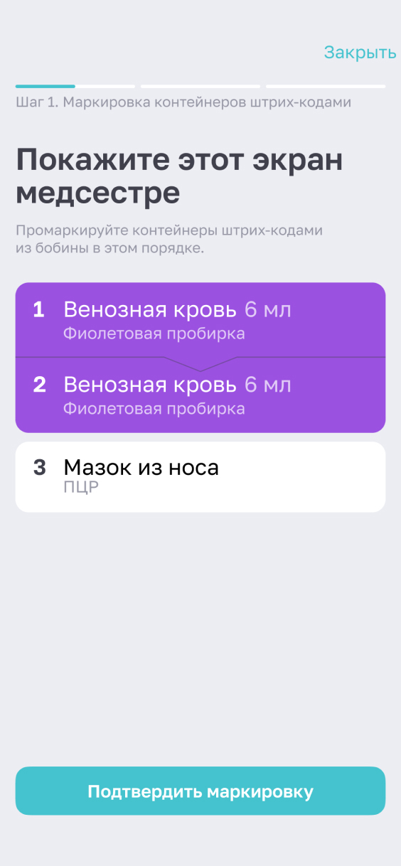 Сервис уникален и им легко пользоваться, но среди клиентов лаборатории много пожилых людей, которым бывает сложно сразу во всем разобраться. Поэтому мы сделали небольшой дружелюбный онбординг — так пользователь узнает о том, как все устроено.